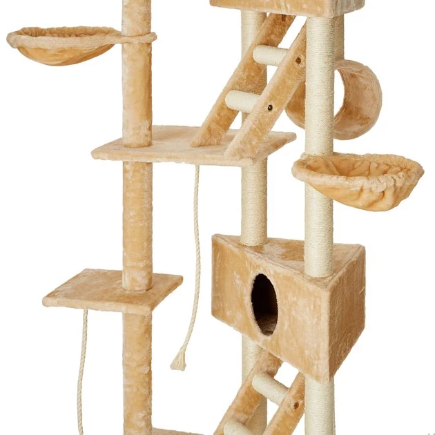The Go Pet Club 106″ Tall Beige Cat Tree is easy to assemble with step by step instruction and tools included.
