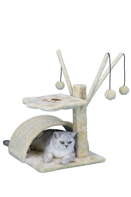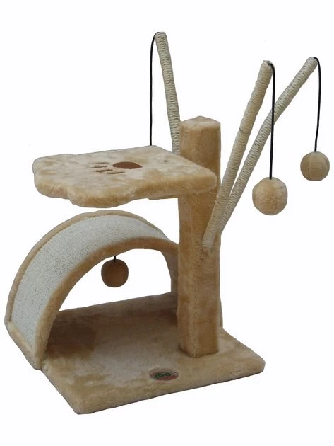 No cat can resist the interactive fun of the Go Pet Club 22-in Cat Tree Condo & Scratching Pad. Crafted with durable pressed wood and finished with a soft faux-fur, this tree is destined to be your feline friend’s favorite spot in the house. The tree includes a curved ramp that doubles as a scratching surface for claws and a private hideaway when your girl wants some alone time. Hanging ball toys provide engaging activity while the top perch offers a comfortable place to lounge because sometimes your pal needs to supervise her world!