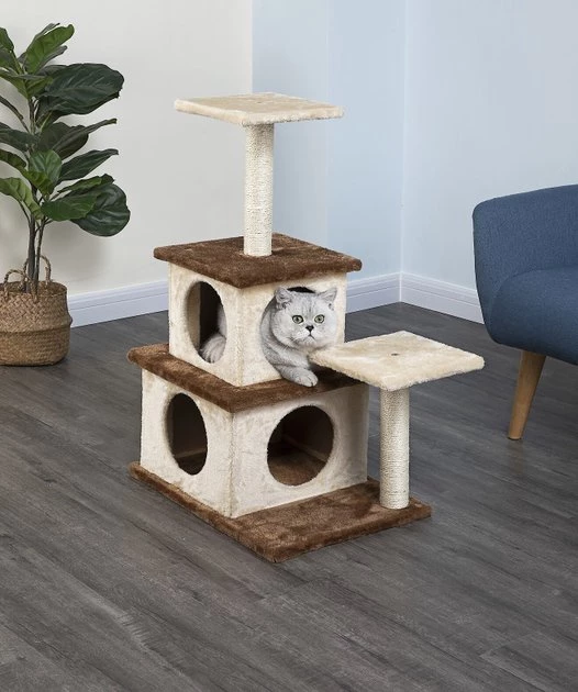 Your feline friend may find something she loves more than catnip with the Go Pet Club 32-in Economical Cat Tree House. This multi-level tree is crafted in a durable wood and finished with a soft faux-fur exterior to provide a comfortable and cozy surface for napping, lounging and spying. Your pal can spend time inside the condos when she’s craving privacy, or sit on top of one of the raised perches for a better view of her kingdom. The posts are covered in sisal rope to encourage your cat’s natural scratching and clawing habits.
