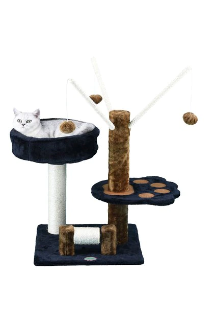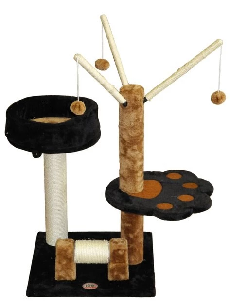 When your furry friend is feeling playful, he’ll love to visit his Go Pet Club 32-in Cat Tree Perch with Dangling Toys. This tree is covered in a soft faux-fur and features everything your kitty needs to have fun! Two sisal rope-wrapped posts are designed to encourage your cat’s natural scratching habits while the three hanging balls engage his love for swatting and batting. A paw-print platform is an adorable spot for perching and the top bed provides comfort and support for whenever your boy needs a nap!