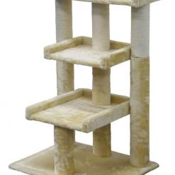 See your cat spring up the Go Pet Club Classic Cat 35-inch Tree Steps with Sisal Covered Posts to snuggle up in style. She’ll love having her own place to exercise while still being able to see everything going on from 35 inches above the ground. Covered in a faux fur material, each level provides her with a comfy place to lay that’s soft to her touch. The multiple scratching posts are wrapped with sisal rope to provide a fun and easy way to groom her claws and get out excess energy safely. Designed for durability, this cat tree is constructed using a wood frame to support your cat and her feline friends.