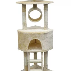 The Go Pet Club 56-in Economical Cat Tree & Sisal Covered Posts will transform your feline friend’s everyday routine. This tree is designed in a soft faux-fur material and features sisal rope-wrapped posts that are purr-fect for encouraging natural scratching behavior. Following the steps up the ladder your feline friend will arrive at her very own private condo, a cozy escape that offers peace and quiet. The tree includes a center tunnel that is excellent for back scratches and an elevated bed that can be used for sleeping or perching!