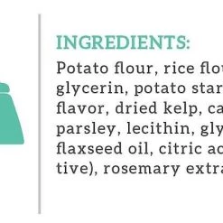 Potato Flour, Rice Flour, Vegetable Glycerin, Potato Starch, Natural Flavor, Dried Kelp, Canola Oil, Parsley, Lecithin, Glycerol, Flax Oil, Rosemary Extract, Alfalfa.