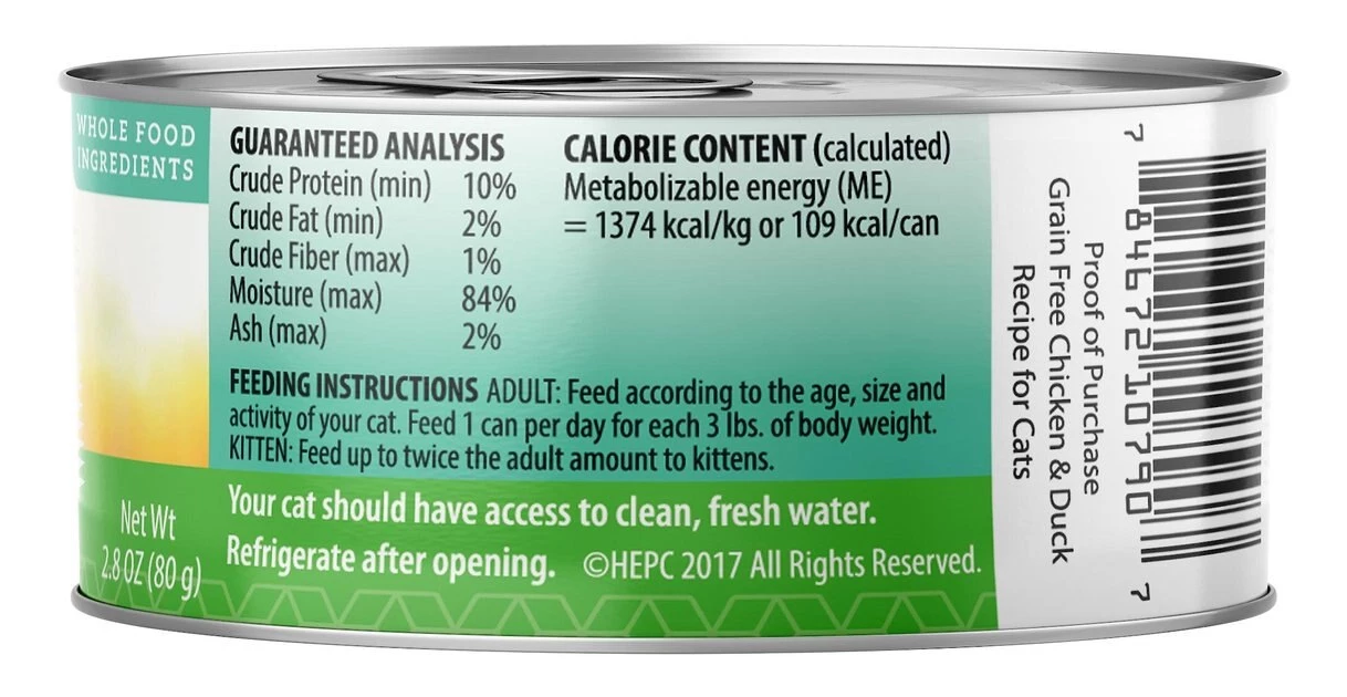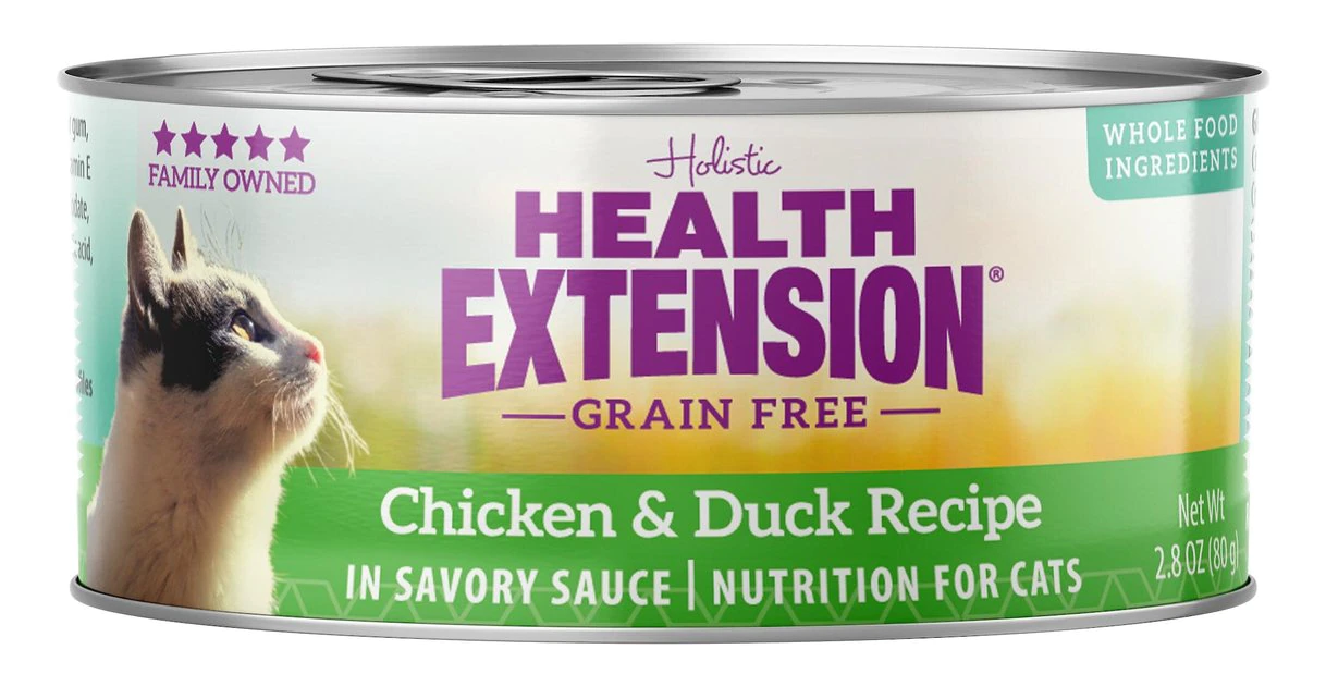The Health Extension Grain-Free Chicken & Duck Recipe Canned Cat Food nourishes your feline with every single bite. Made to provide years of soft purrs and gentle nuzzles, this holistic recipe is specially formulated to promote a shiny coat, resilient immune system, flexible joints, and strong bones. It’s chock full of vitamins and nutrients that also maintain a healthy urinary tract, and your cat will love the chicken and duck flavors with rich fruits and vegetables—and you’ll feel great about giving him paw-some food.