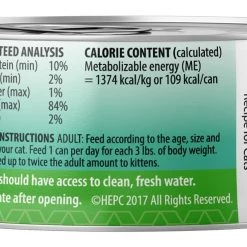 Adult: Feed according to the age, size and activity of your cat. Feed 2 & 3/4 cans per day for each 5lbs of body weight. Kitten: Feed up to twice the adult amount.