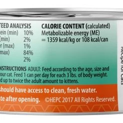 Adult: Feed according to the age, size and activity of your cat. Feed 3 & 3/4 cans per day for each 5lbs of body weight. Kitten: Feed up to twice the adult amount.