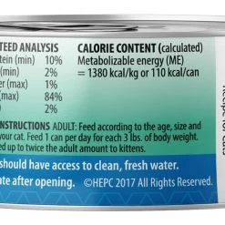 Adult: Feed according to the age, size and activity of your cat. Feed 2 & 3/4 cans per day for each 5lbs of body weight. Kitten: Feed up to twice the adult amount.