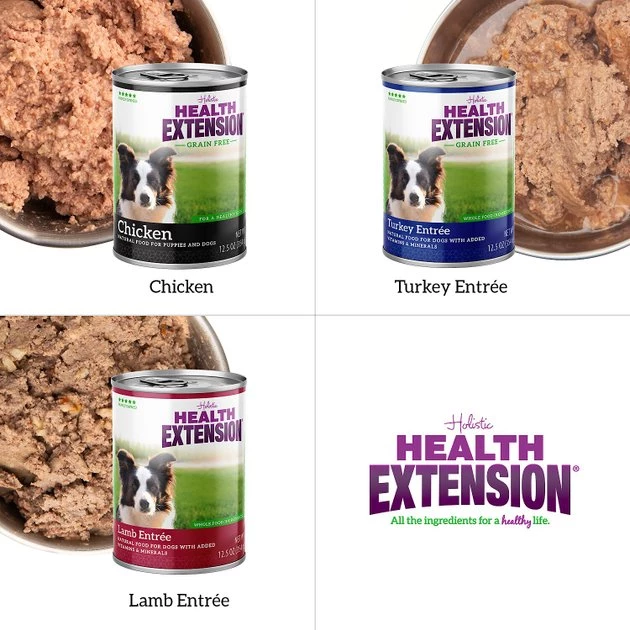 Treat your canine companion to a delicious and nutritious meal with Health Extension Pate Variety Pack Canned Dog Food. This variety pack comes with three cans of 95% Chicken Pate, Grain-Free Turkey Entrée and Lamb Entrée, all made without by-products, rendered animal fats and artificial preservatives! Plus, each pate recipe is fortified with vitamin and minerals and made with real vegetables and animal protein like chicken, turkey, lamb, carrots and sweet potatoes. Your pal will be drooling with delight once he gets a taste of these Health Extension Grain-Free pates!