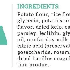 Potato Flour, Rice Flour, Vegetable Glycerin, Potato Starch, Natural Flavor, Dried Kelp, Canola Oil, Parsley, Lecithin, Glycerol, Flax Oil, Nonfat Dry Milk, Lactic Acid, Citric Acid, Fructooligosaccharide, Rosemary Extract, Dried Bacillus Coagulans Fermentation Product.