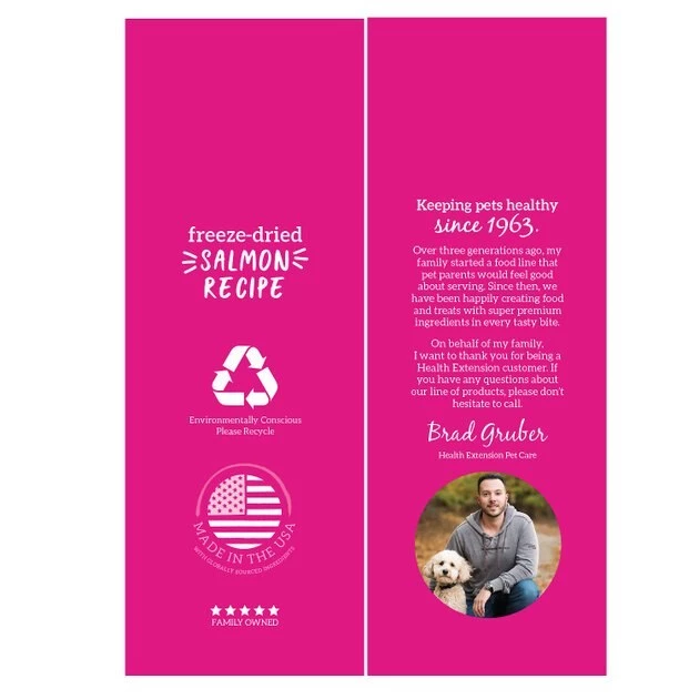 Instantly make any meal more nutritious and tastier for your dog with Health Extension Super Bites Salmon Recipe Freeze-Dried Dog Food Mixer. Tasty salmon boosts the flavor of your pup’s meals, enticing him to clean up his food. With no rendered animal fats or added sugars, it’s a healthy addition to your dog’s diet. The freeze drying process acts as a preservative, so this food is free of artificial preservatives, flavors and fillers. It’s grain- and gluten-free and is paw-fect for furry friends who have food sensitivities. Use this mixer to give your dog extra healthy nutrients, make meals more appealing or to simply treat your good boy to an extra-tasty meal.
