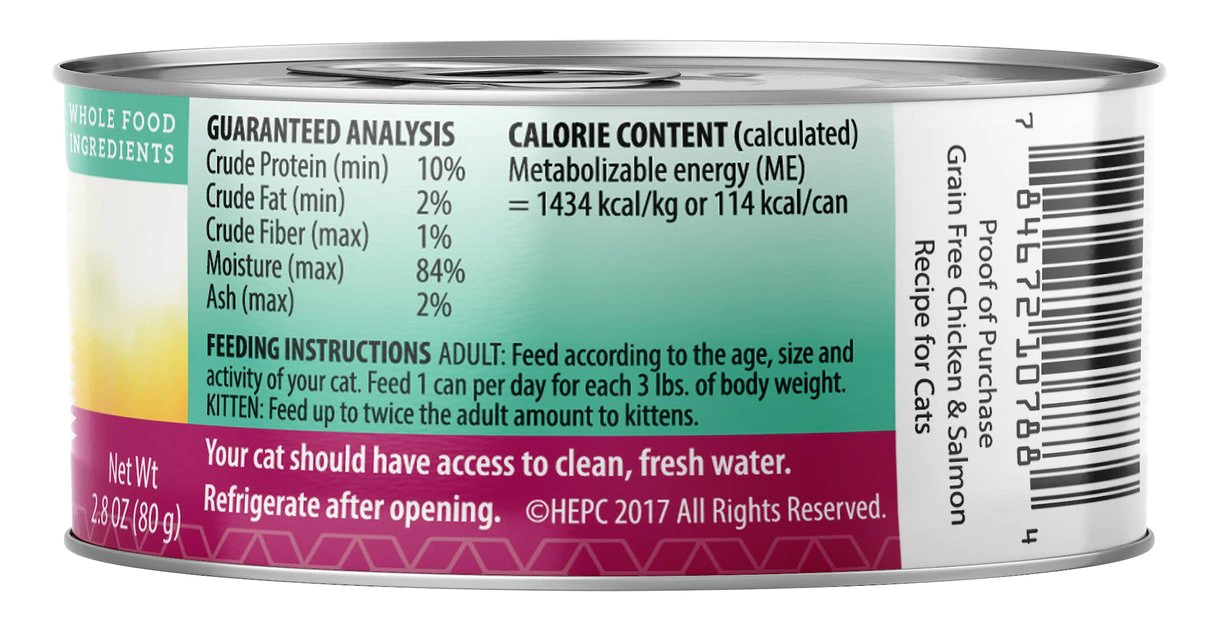 Adult: Feed according to the age, size and activity of your cat. Feed 2 & 3/4 cans per day for each 5lbs of body weight. Kitten: Feed up to twice the adult amount.
