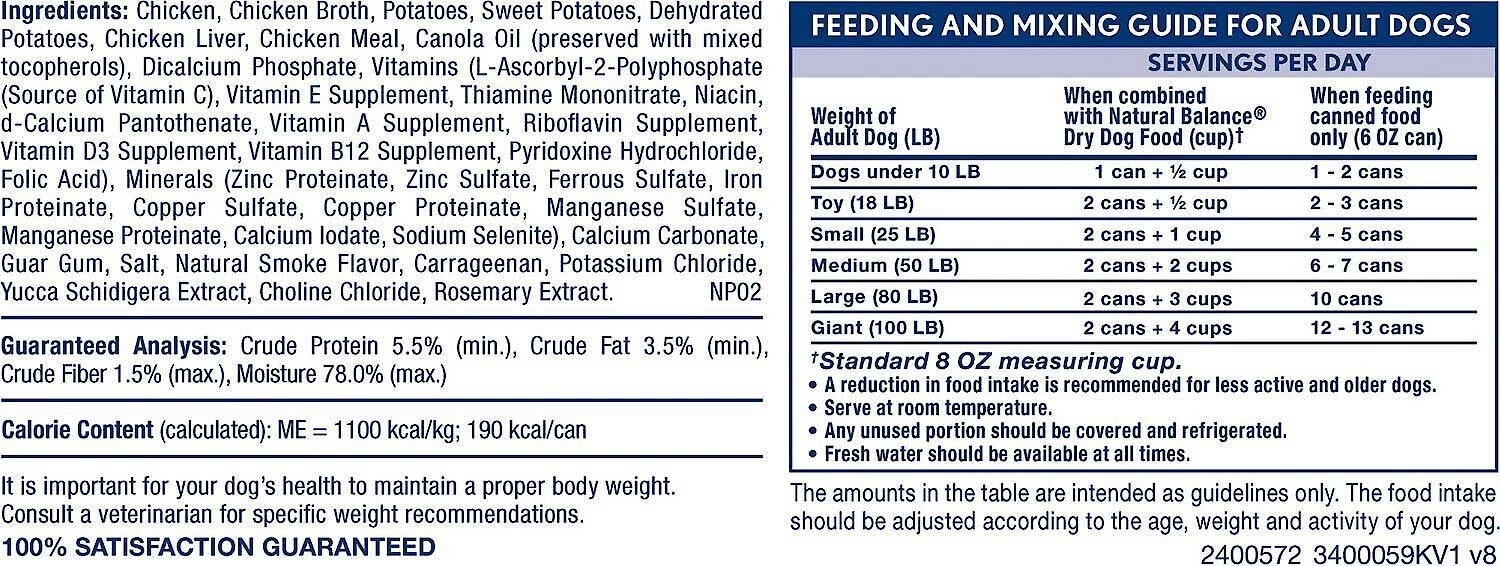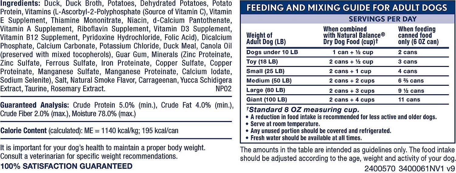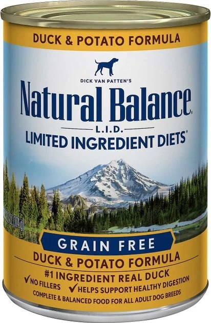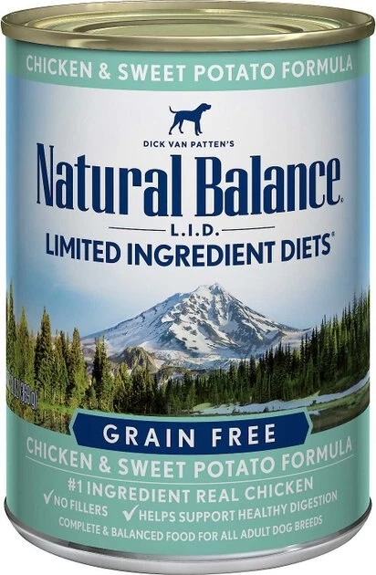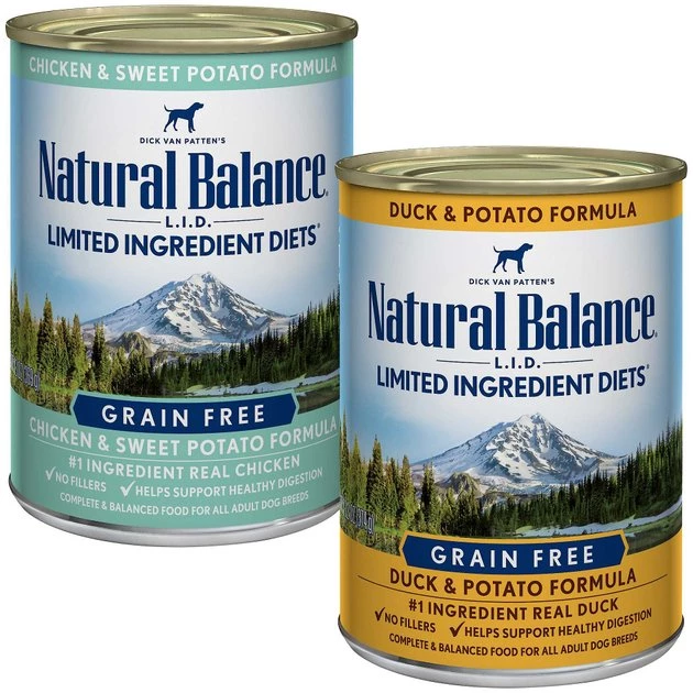 Natural Balance L.I.D. Limited Ingredient Diets Chicken & Sweet Potato Formula + Duck & Potato Formula Canned Dog Food are grain-free formulas that combine one protein and one carbohydrate to give pups with sensitive stomachs or food-related allergies all the nutrition they need in a tasty, well balanced meal. Whether you serve country-fresh chicken and sweet potato recipe or the drool-worthy duck and potato, your furry friend will love these easy-to-digest, flavorful feasts!
