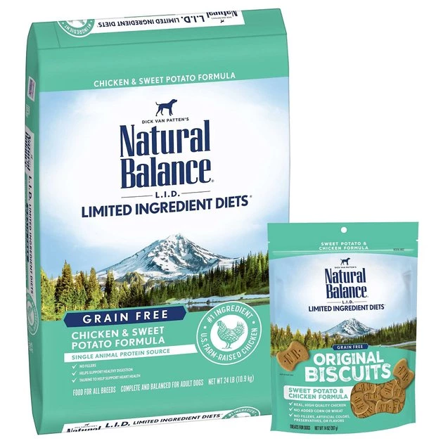 - This duo includes Natural Balance L.I.D. Limited Ingredient Diets Chicken & Sweet Potato Formula Dry Dog Food and Natural Balance L.I.T. Limited Ingredient Grain-Free Treats Sweet Potato & Chicken Formula Dog Treats.