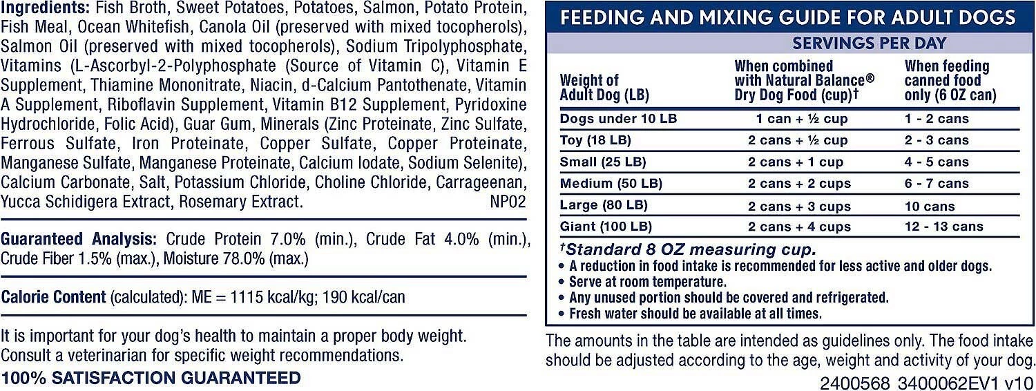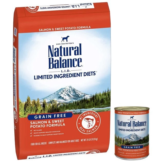 Make sure that your mate is always feeling great with Natural Balance L.I.D. Limited Ingredient Diets Sweet Potato & Fish Formula Canned Food + Salmon & Sweet Potato Formula Dry Dog Food! This canned dog food formula is made with lean fish and only one carbohydrate source, making it perfect for pups with sensitive stomachs or dry, itchy skin from food-related allergies. Serve it on its own or combine with Fish & Sweet Potato Dry Dog Food to add additional hydration to your pup’s diet. Then give your pup this limited-ingredient dry food for dogs, which features real salmon as the very first ingredient. This premium dog food is crafted to provide the nutrition, quality and taste that your doggie dude deserves. It is produced in the USA using the world’s finest ingredients and does not contain any added peas, pea protein, lentils, legumes, corn, wheat or soy.