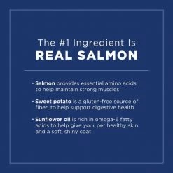 - Salmon is the first ingredient in this recipe, providing essential protein and amino acids to help maintain strong muscles, while sweet potatoes offer a grain-free source of fiber to support healthy digestion.