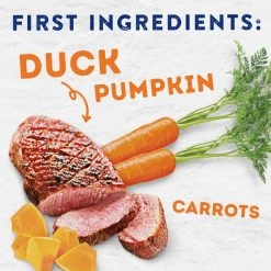 Your canine companion will be licking his chops once he takes a bite of Natural Balance Platefulls Savory Duck & Pumpkin Recipe Wet Dog Food! This complete and balanced homemade style meal is cooked in broth with real duck, carrots, pumpkin and green beans. Each portion comes in a ready-to-serve pouch that can be fed to your furry friend as either a meal or a tasty topper.